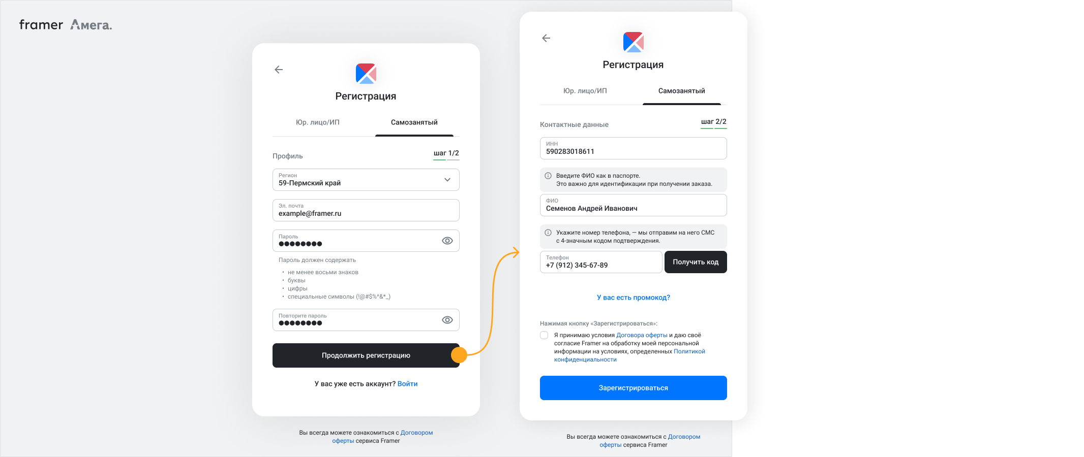 - Перейдите по ссылке: https://framer.ru/#/auth/register