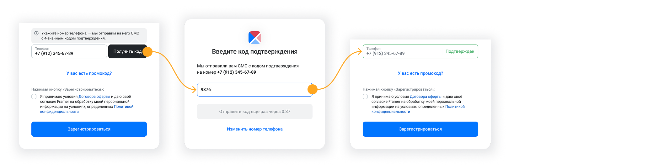 нажмите Получить код → поступит СМС с 4-значным кодом → введите код