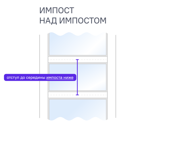 Высота импоста относительно импоста ниже равна высоте от середины этого импоста до середины импоста ниже.