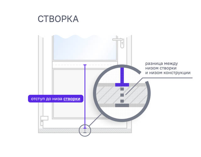 - Из значения отступа для глухой части вычтите разницу между низом створки и низом конструкции из списка ниже